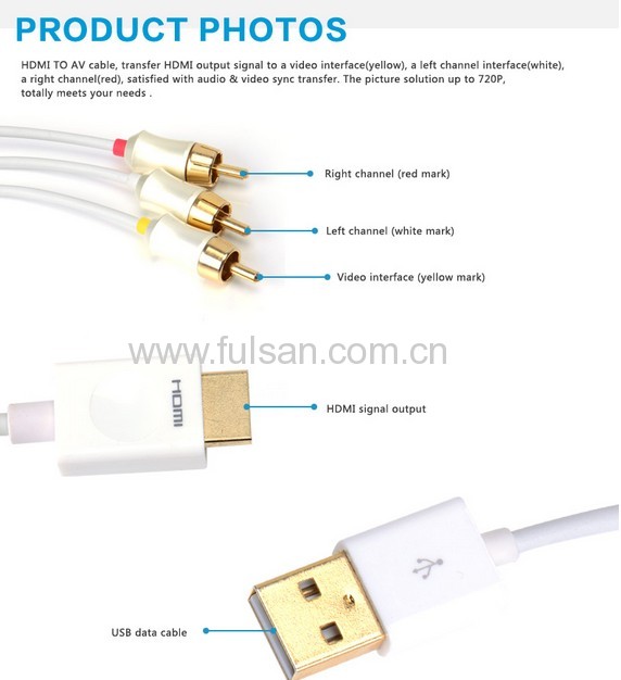 HDMI to AV adapter cable with USB charger cable/HDMI to 3RCA audio and video cable