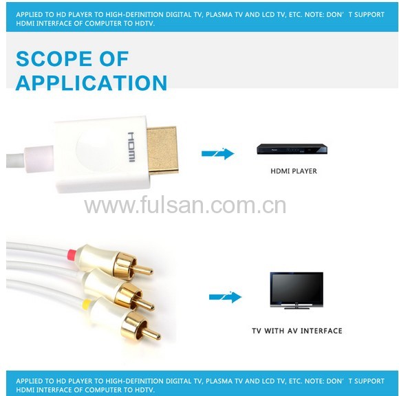 Application: Applied to DVD player, HDMI Video image to AV interface of TV. Do not support Computer or laptop HDMI interface to TV, Special design for small screen, car screen 720P