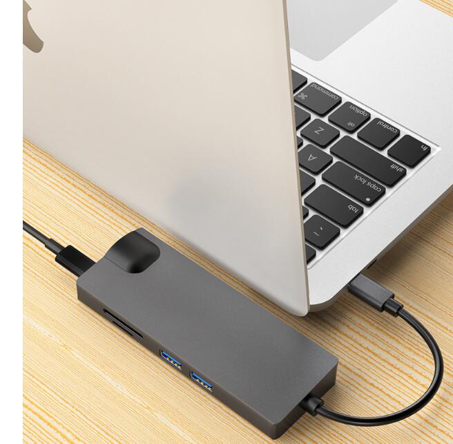 Multi-Function Adapter Gray 6-in-1 USB C Hub, 6-in-1 design and massive expansion, 3 standard USB ports, 5Gbps transfer speed, fast sync and file sharing, 1 HD-MI port and USB C power transfer connector Allow USB C adapter to connect to any device via USB C port - Provides all possibilities in one hub, 1 SD port and 1 TF card reader port, Universal SD ready - SD card and Micro SD card can be up to 104M / S's fast transfer speed, up to 512GB, can easily transfer photo shoots or videos from cards to laptops in seconds with the camera. Portable, anti-overheating and plug-and-play - Stylish and compact pocket size, 74.2*50*13mm inches, easy to put into a laptop bag, bag or pocket. The advanced aluminum housing makes the USB C Hub rugged enough to prevent overheating and keep you and your equipment safe. Plug and play, no software, drivers or complex installations. Make your office, travel and easy to use.