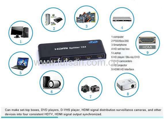 High Quality 4 ports Hdmi Splitter v1.3b & v1.4 Full HD 1080P