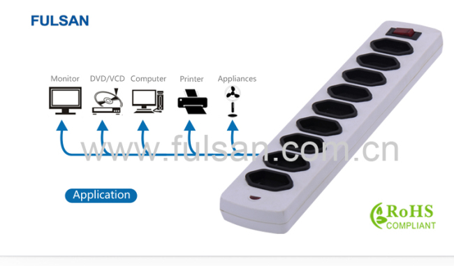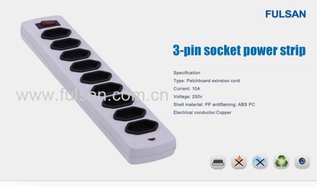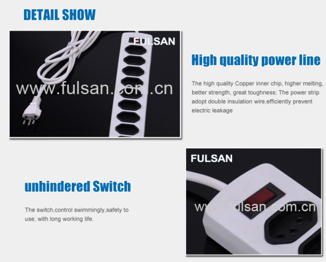 I:Products 1.ABS material 2.copper hardware 9 Outlet Inmetro power strip Brazi type electrical outlet 1.model NO: 9340 KS 3.with single switch 4.with fuse 5.with indicate light 6.inside copper conductor 7.Blister card packing Sales point: 1. High quality 2. Favorable price 3. Great varity of products 4. Attractive design 5. OEM and ODM service provided.