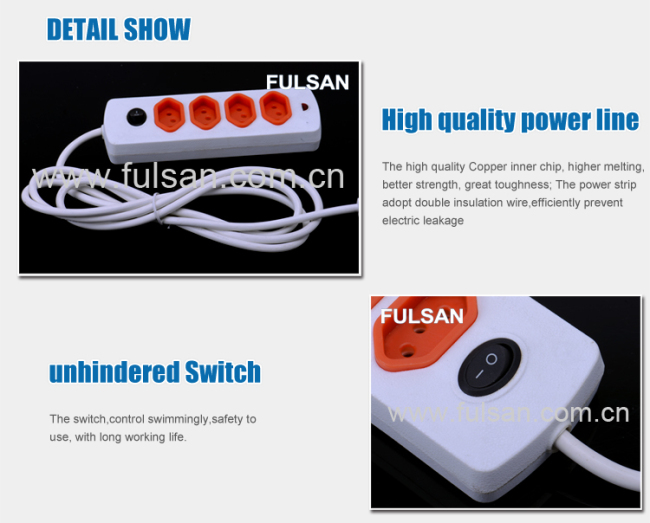| Product name: | 4 way power extension cord socket with switch for Brazil |