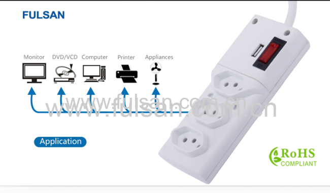 Function:connect to power,with illuminated overload switch and 1*USB charger
