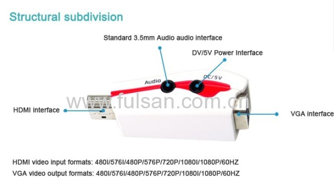 1.HDMI to VGA adapter converter with Audio & Power