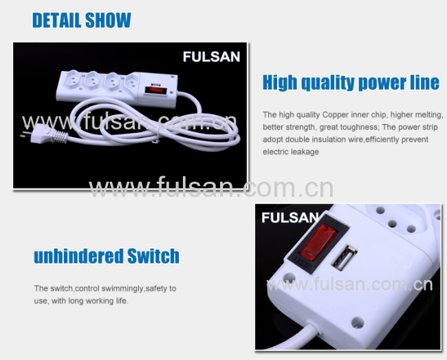 Function: Connect to power, with illuminated overload switch and 1*USB charger