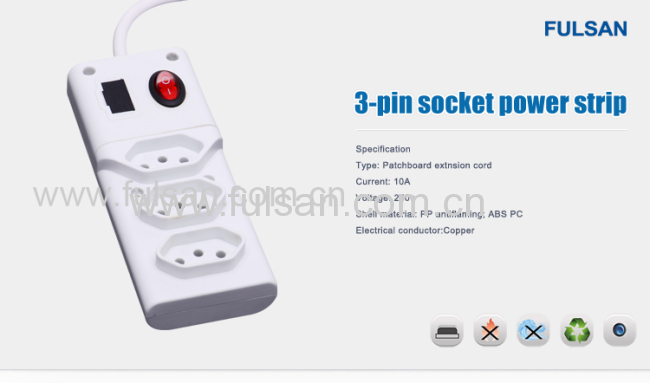 High power led strip I:Products 1.ABS material 2.copper hardware 9 Outlet Inmetro power strip Brazi type electrical outlet 1.model NO: F-2003 3.with single switch 4.with fuse 5.with indicate light 6.inside copper conductor 7.Blister card packing Sales point: 1. High quality 2. Favorable price 3. Great varity of products 4. Attractive design 5. OEM and ODM service provided.