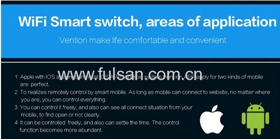 Product usage: By setup APP software in mobile, it can realize remotely control by smart switch with home WiFi, by mobile we can control smart switch freely to realize control home electrical equipments.