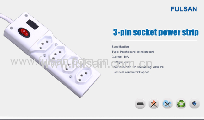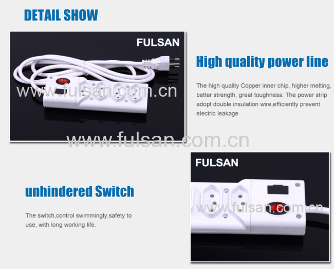 Under cabinet power strip I:Products 1.ABS material 2.copper hardware 9 Outlet Inmetro power strip Brazi type electrical outlet 1.model NO:F2004 3.with single switch 4.with fuse 5.with indicate light 6.inside copper conductor 7.Blister card packing Sales point: 1. High quality 2. Favorable price 3. Great varity of products 4. Attractive design 5. OEM and ODM service provided.